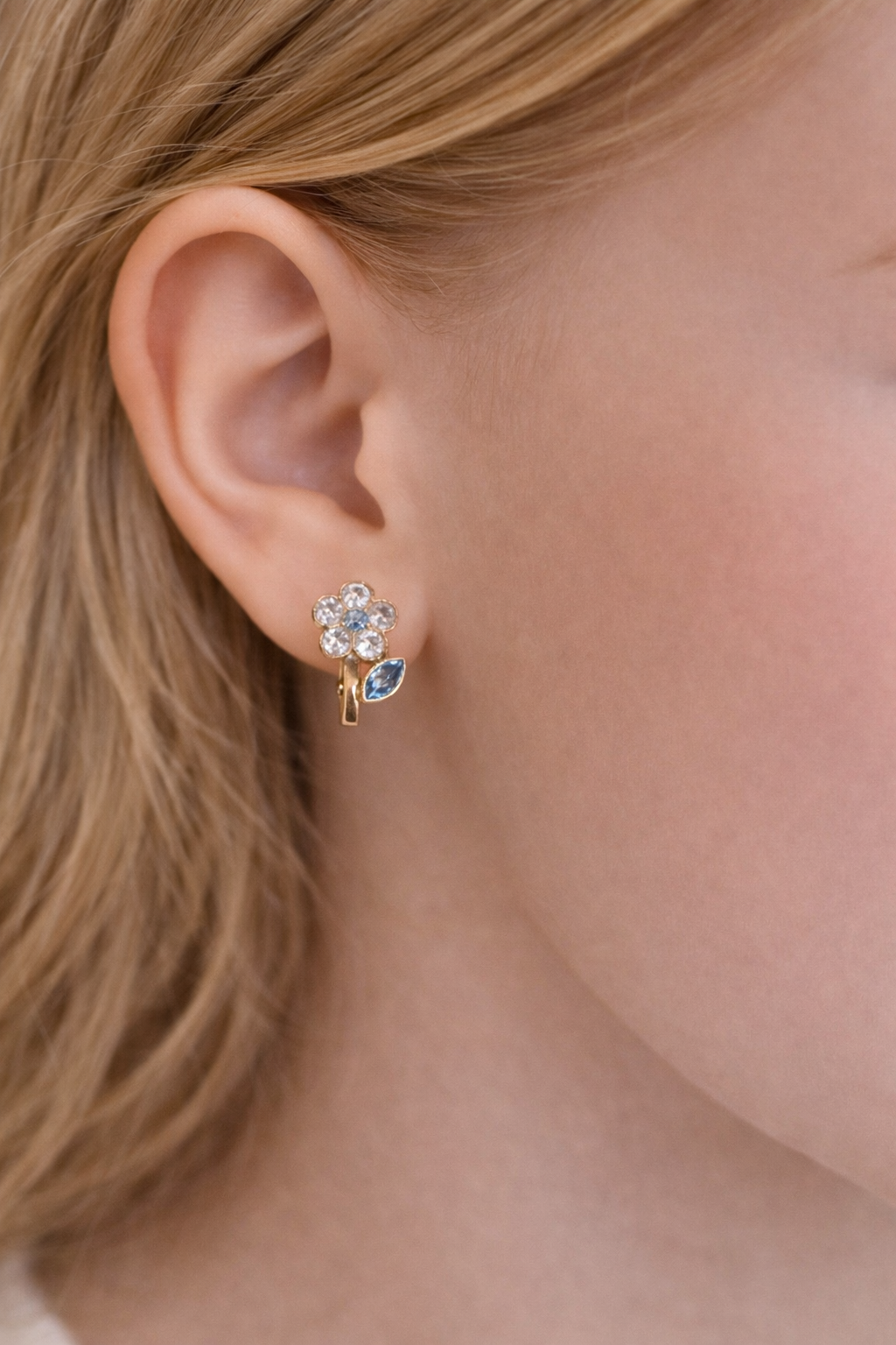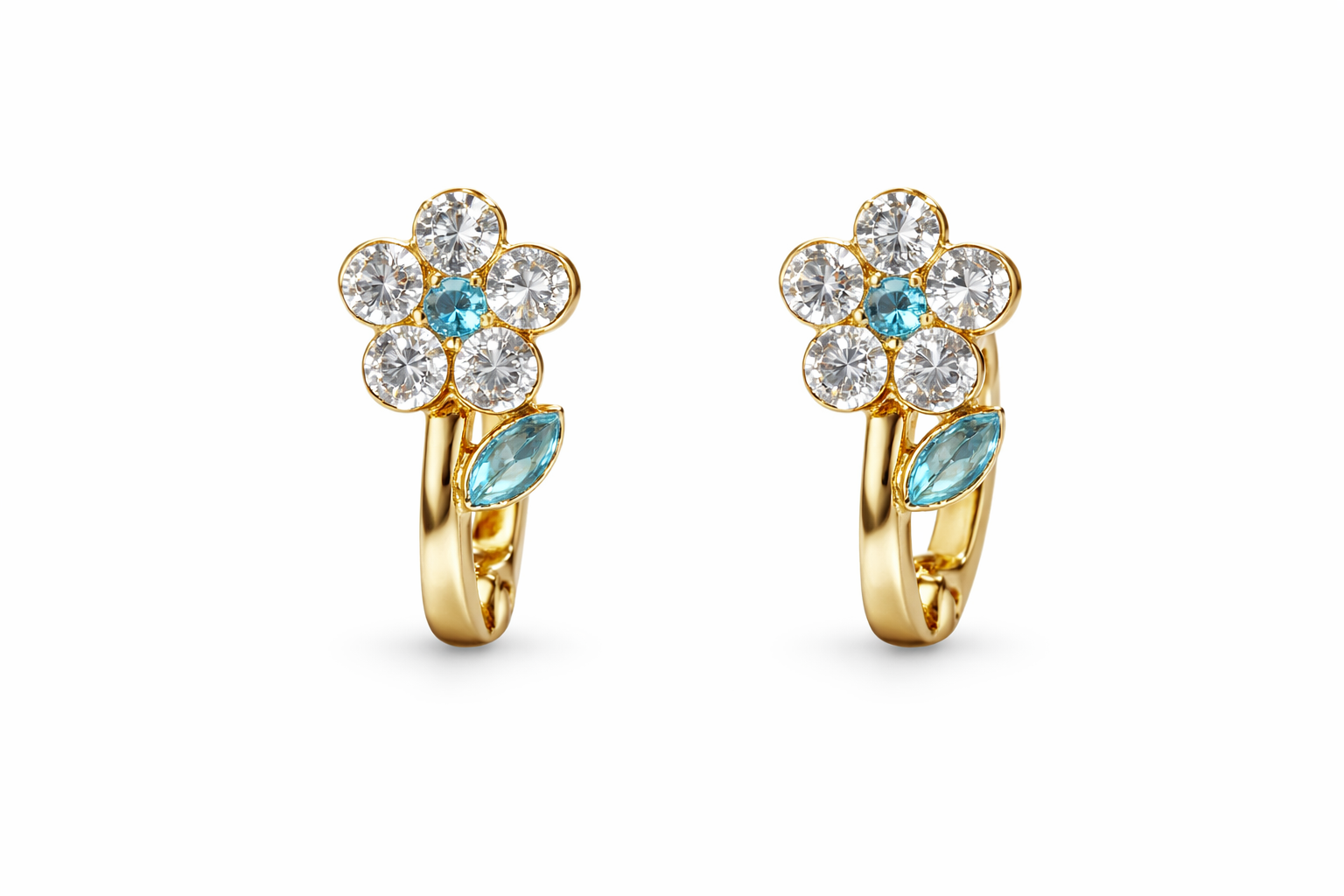 Mavi Taşlı Papatya Küpe