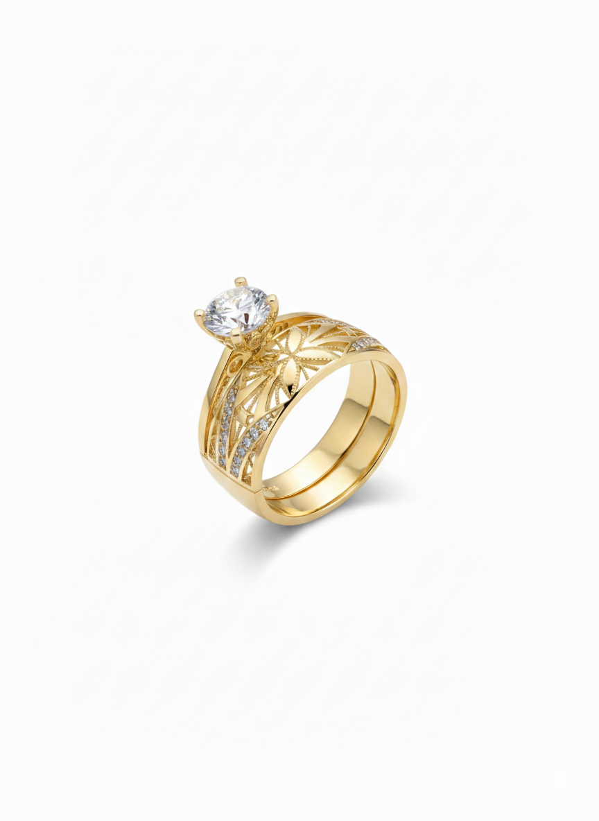 Roset Motif Tektaş Alyans